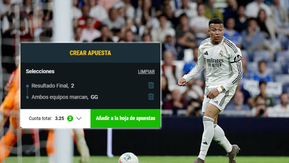 Gana Real Madrid + Ambos marcan (GG) – Cuota de 3.25
