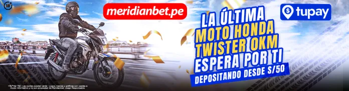 Recuerda que puedes seguir participando en la promoción GANA TU MOTO CON TUPAY gracias a Tupay junto con Meridianbet. Esta promoción consiste en realizar apuestas desde 50 soles a través del MEDIO DE PAGO TUPAY. A más depósitos con Tupay, más oportunidades de ganar. ¡Participa y gana una MOTO HONDA TWISTER 0 KM!